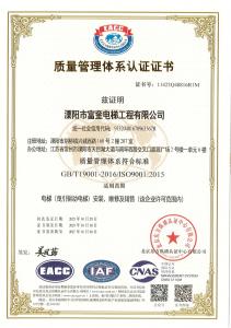 溧陽市富奎電梯工程有限公司 溧陽市富奎電梯工程有限公司是于二OO八年一月九日在原前身溧陽市電梯工程公司基礎(chǔ)上成立的,是專業(yè)從事電梯銷售安裝維修、保養(yǎng)的企業(yè)。是國家質(zhì)監(jiān)總局頒發(fā)的特種設(shè)備安裝、改造、維修A級安裝許可證單位。公司組織機構(gòu)實行總經(jīng)理負(fù)責(zé)制,公司下設(shè)管理部、銷售部、安裝維修部、質(zhì)安部、財務(wù)部,公司另外設(shè)十二個分公司:四川分公司、江蘇分公司、上海分公司、浙江分公司、湖南分公司、遼寧分公司、山東分...